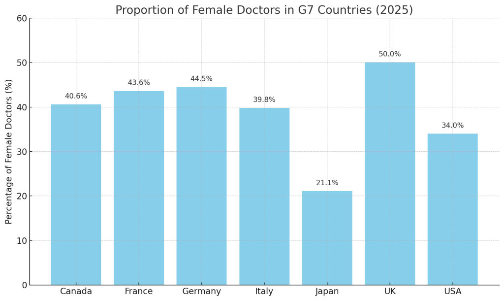 Figure 3: Proportion of Female Doctors in G7 Countries (2025)