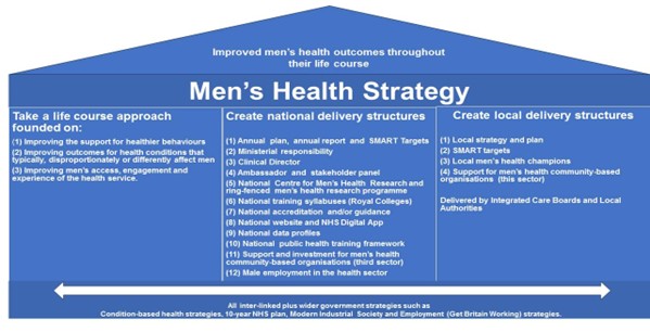 Based on the evidence of what is working in women’s health alongside evidence of male-specific needs, the following are the proposed national level delivery structures for a Men’s Health Strategy.